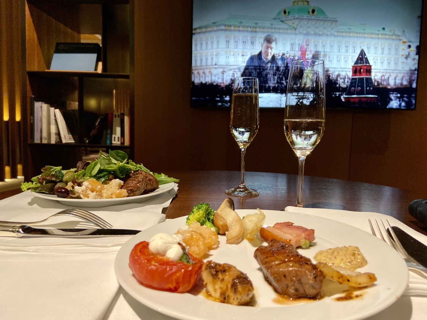 한동안 23층 라운지 사용이 포함된 패키지로 예약을 했었어요. 23층 라운지 음식은 일반 뷔페보다 음식의 가짓수는 적지만 메뉴마다 아주 맛이 있고 술 한잔 마시면서 먹기에 알맞은 음식들로 구성되어 있어요. 어느 연말에 라운지에서 식사했던 모습입니다.