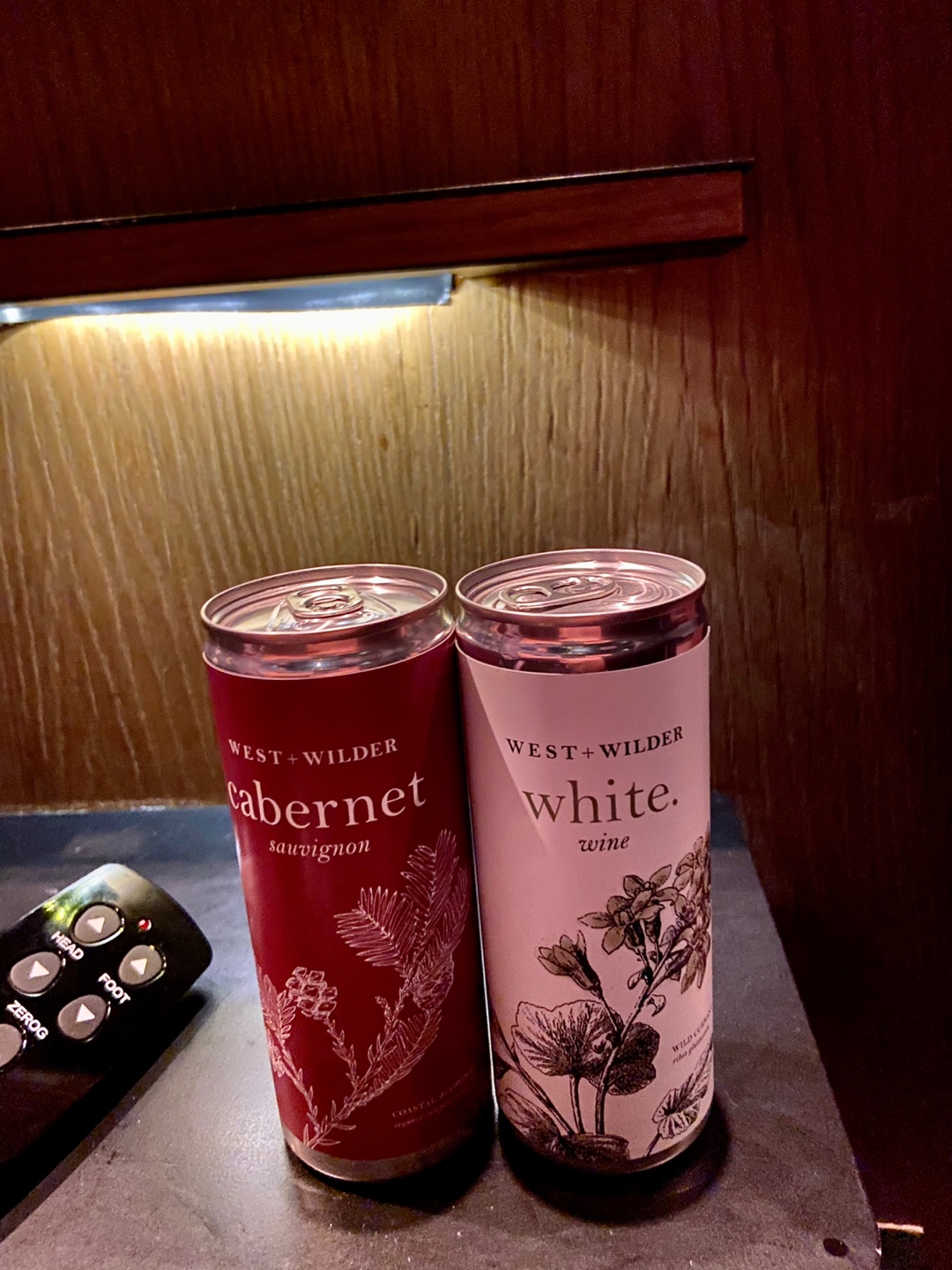 편안히 영화를 보면서 와인도 한 잔 마시면 좋지요. 템퍼 시네마에서 기본 음료를 1인당 하나씩 주기도 하는데 저희는 따로 캔 와인을 하나씩 주문 했습니다. 예전에 와인을 사러 갔다가 이미 마셔본 적이 있는 캔 와인이 있길래 레드 와인, 화이트 와인 하나씩 주문 했어요.