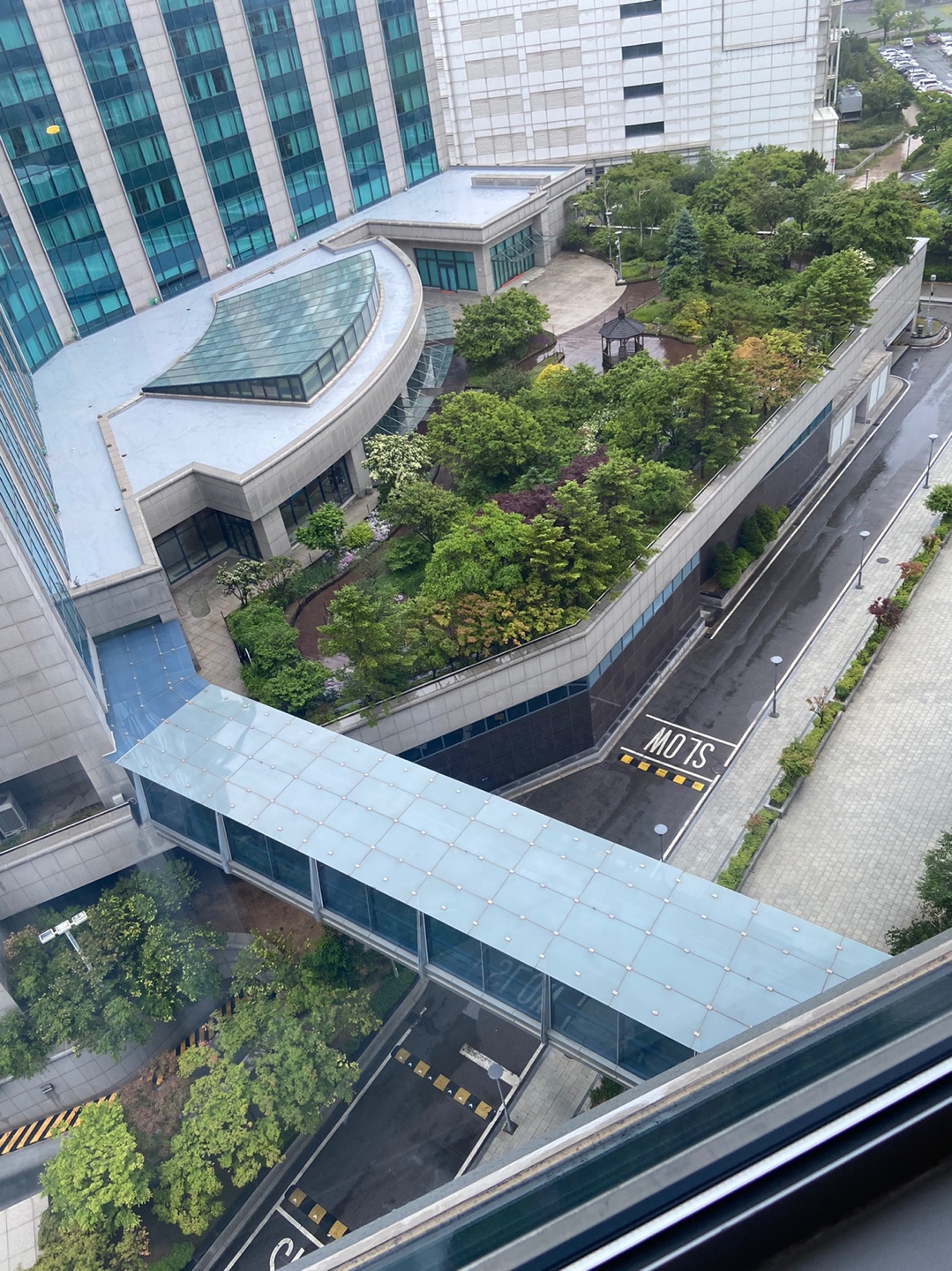 인천 하얏트에서 1박한 적은 몇 번 있는데 이번에 조식 뷔페는 처음 먹어보았어요. 체크인하면서 조식 뷔페가 3부제 운영되고 QR코드를 통해 시간을 예약하라는 안내를 받았어요. 웨스트윙에 있는 룸에서 내려다보니 이스트로 연결되는 통로가 창 밖으로 보였어요. 저 통로를 보고 바로 예약을 했어야 했나봐요.