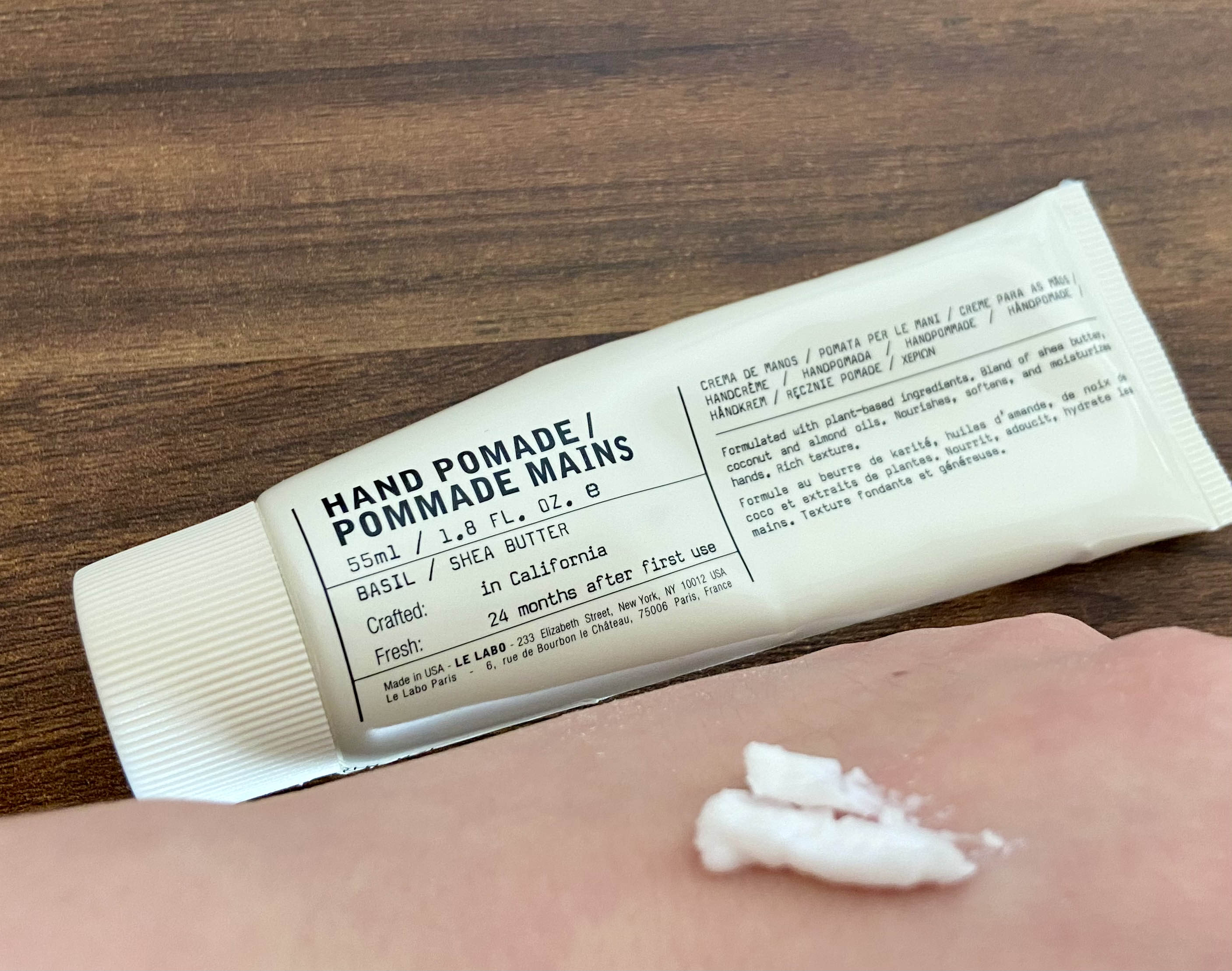 우선 요즈음 제 최애 데일리 핸드 크림이 된 르라보 핸드 포마드 바질입니다. 이 제품은 발림성이 부드러워서 자주 발라도 사용감이 좋고 무엇보다 향이 참 좋아요. 은은한 바질 향이 좋아서 바르고 나면 기분도 좋아집니다. 유분감보다 수분감이 더 느껴지는 제품이에요.