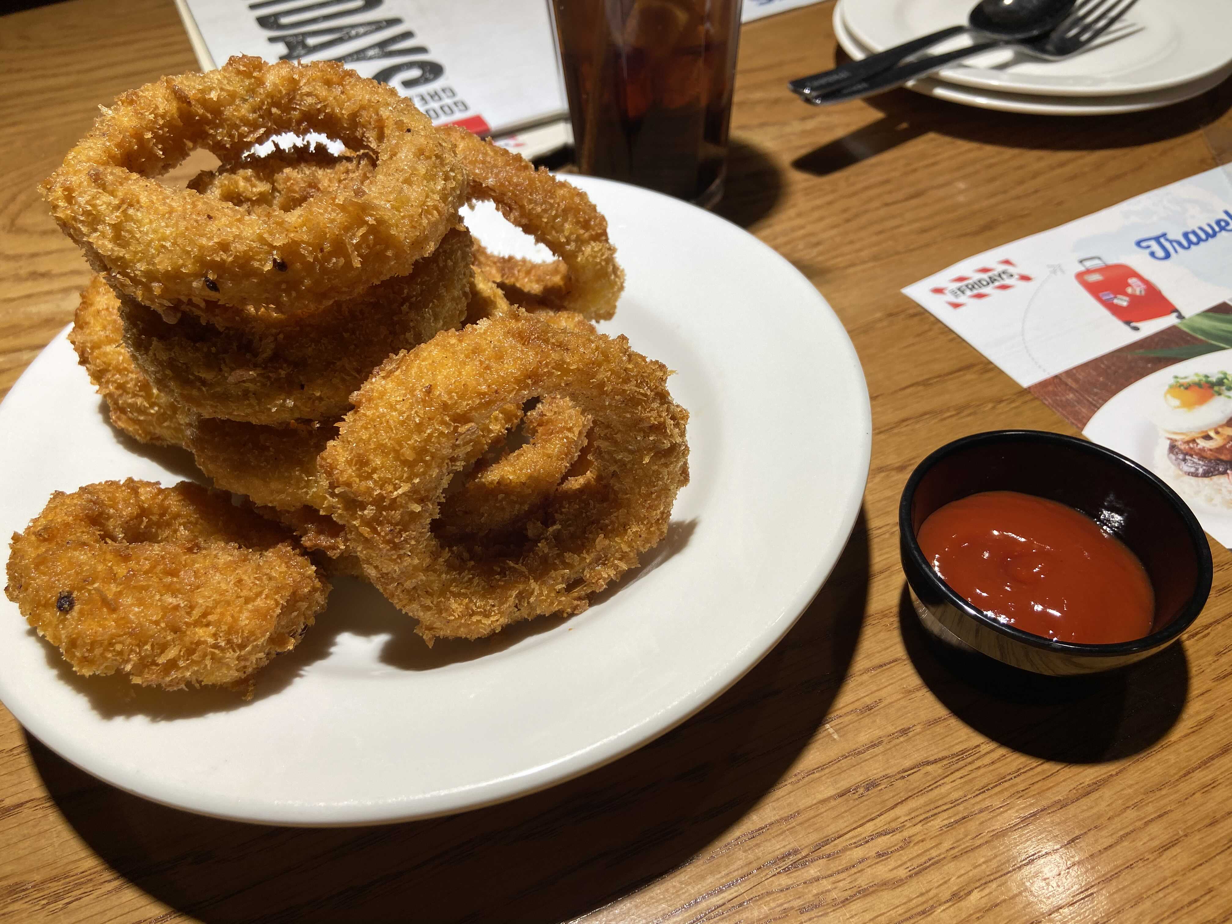 케이준 어니언링은 사진으로 봐도 정말 먹음직스러워요. 케챱을 찍지 않고 먹어도 맛있어요.